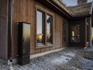 I motsetning til I-boks-serien, har BI-skapet plass til strømmåler. Døren lukkes med en vrider, men du kan også få nøkkel og nøkkellås som tilvalg.